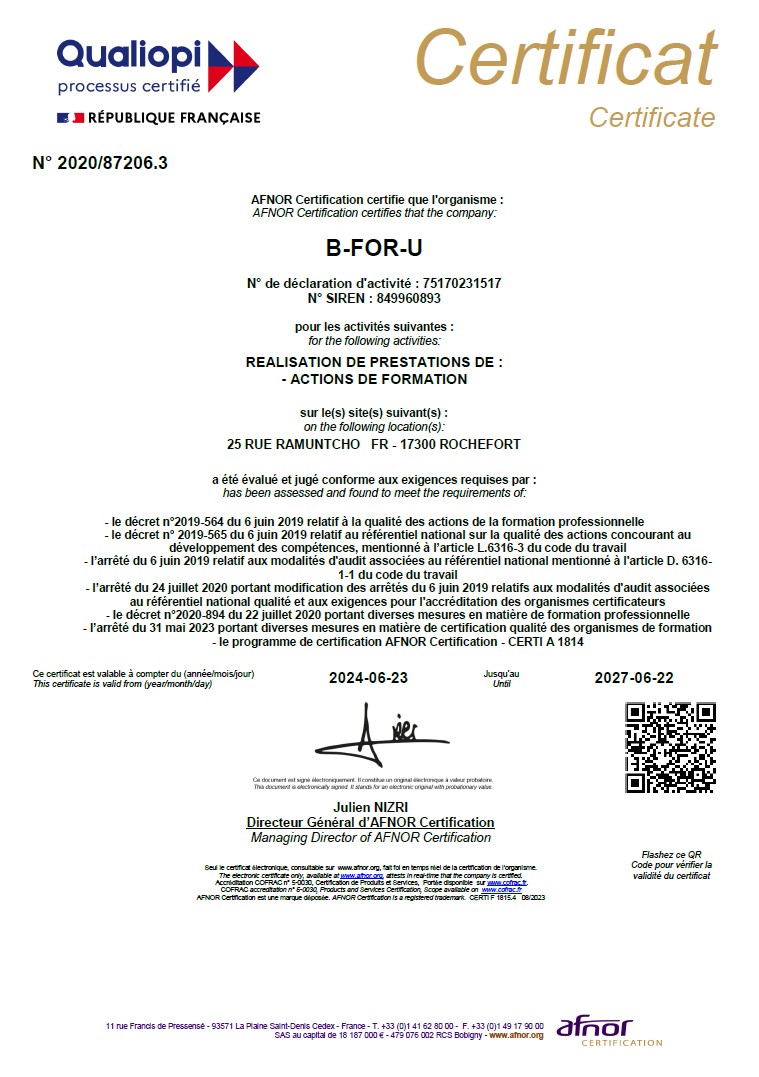 B-For-U a la volonté de répondre aux besoins des stagiaires en proposant des formations concrètes, sur des sujets divers et présentant pour la plupart des évolutions récentes.